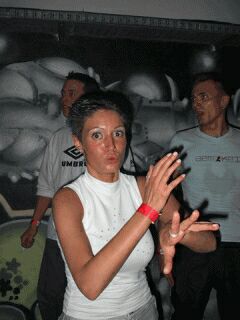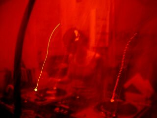 Langsam erhöhte Chris die Lautstärke und das Tempo und los ging die Party der Superlative. Chris mit Steve, Chris mit Gaetano und Chris mit Adam - so lief das die halbe Nacht durch - zusammen on 4 Decks and 2 Mixer !!! Als dann noch Speedy J mit seiner Livemukke begann blieb kein Stein mehr auf dem anderen. Er nahm mit den hämmerten Beats und den Breakes die ganze Bude Stein für Stein auseinander. Einfach GOIL.