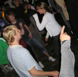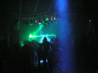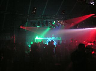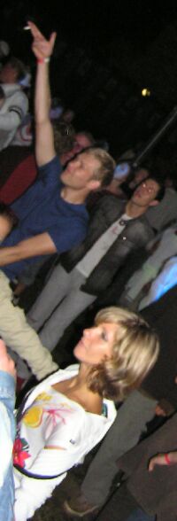 leuten, damit stimmung aufkam im techno-zelt.