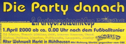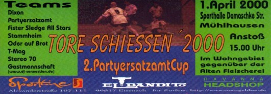 [archive] - [events 2000] - [tore 2000] - [vorschau] Tore Schiessen´ 2000 2. PartyersatzamtCup !An das sportliche Feiervolk! Die Rede ist von der ultimativen Mischung zwischen Sport und Techno. Insider wissen wovon hier geredet wird (Fussball!). Dieses Jahr sollen auch wir, das Team von DJ-Connection eine Mannschaft aufstellen. Für ein Hallenfußballturnier der anderen Art. Dazu brauchen wir Euch! Denn nur durch Eure Teilnahme können wir siegen! Da aber fair vor geht, drücken wir den anderen 7 Teams die Daumen und wünschen ihnen viel Erfolg!!! ![]() Da im letzten Jahr 12 Mannschaften am Start waren und die Spieler (vom DJ bis Türsteher der jeweiligen Organisation) ziemlich erschöpft waren, wurde dieses Jahr auf 8 reduziert. So werden um sportlichen Erfolg "fighten" das PEA-Team, die Dixon-Crew, Marco Remus und seine Mannen (Stereo 70), die Fister Sledge All Stars, aus Hessen das Stammheim-Team, Oder auf Brot, die T-Mag und wir, DJ-Connection. ![]() Also liebe Leute, laßt uns nicht im Stich... und meldet Euch bei uns an. weBuster Chris !?!Leider schon vorbei... aber vielleicht im nächsten Jahr!?! [top] |