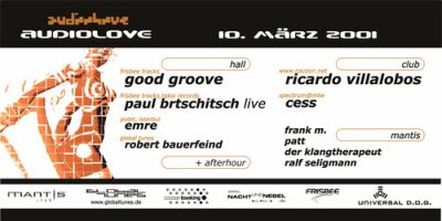 Für die zweite Audiolove in diesem Jahr hat die Frankfurter Artist- und Event-Agentur GLOBALTUNES bei den benachbarten Frisbee Tracks-Aktivisten an die Tür geklopft und herzlichst dazu eingeladen, die Hallen in Lahr zu rocken. Desweiteren wird ein ganz besonderer Gast aus einem Land erwartet, wo Techno noch im Vergleich zu den meisten anderen europäischen Ländern ziemlich am Anfang steht und sich eine stetig wachsende Szene allmählich über die gesamte Metropole Istanbul und über deren Grenzen hinaus auszudehnen beginnt. Der dritte Floor wird diesmal vom Nacht und Nebel-Team aus Freiburg gestaltet und deckt damit ein breites Spektrum an elektronischer Musik ab.