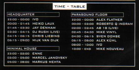 Es war wie schon beim letzen Festival auch die Nachtwerk Disco ganz im Motte Electric Delicate gestaltet und dekoriert. Große Stofftücher und Ballons waren aufgehängt, doch all das war nichts gegen die Projektion die an diese geworfen wurden. Es wurde eigens ein LJ aus Ibiza angeheuert der alles bisher dagewesene in den Schatten stellte. Zu fortgeschrittener Stunde Tauchte mitten aus der Menge eine große skurrile Gestalt hervor die Durch Ihre Größe allen schon aufsehen erregte. Es war DJ Rush , der heute Abend hier Live sein Wunderwerk tun sollte. Alle Achtung, der Mann versteht es einen gute Show zu machen und absolut geile Musik zu produzieren. Die Leute waren außer sich. Alle waren aus dem Backstage Bereich gekrochen gekommen um den Klängen zu lauschen. Im Anschluss machte sich Chris Liebing zu werke, um die Menge in Schwung zu halten. Das war einen gelungene Party und wir freuen uns schon auf die nächste! Thanxx to Achim by Nic DJ´s Nachtwerk Disco Headquarter Freaks & Folks Nachtwerk Disco Headquarter DJ´s Nachtwerk Club Parasound Floor Feaks & Folks Nachtwerk Club Parasound Floor |
