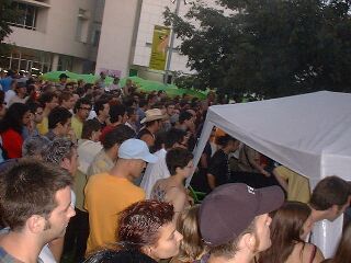 dort wo zuvor noch gesessen wurde, standen die leute