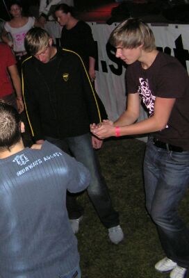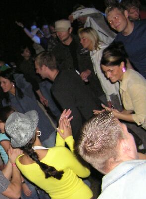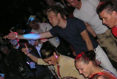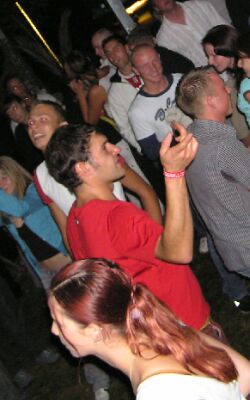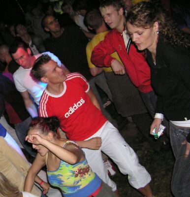 leuten, damit stimmung aufkam im techno-zelt.