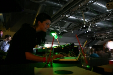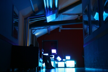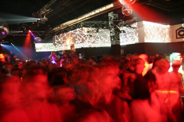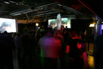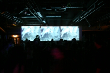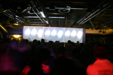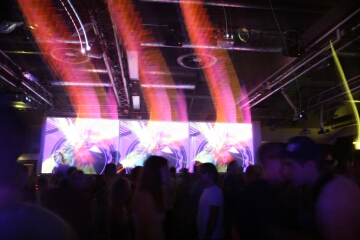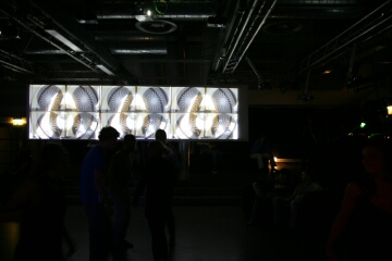 neben den leinwänden und den im club verteilten