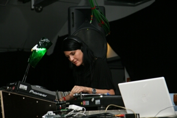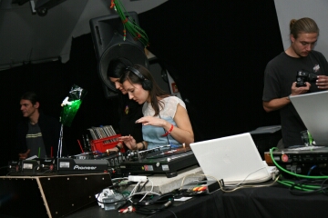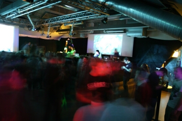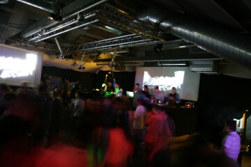der dj-booth/bühne einnahmen, als man das sonst