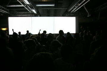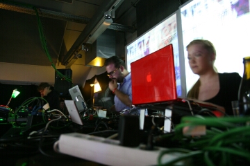 die herren/damen hinter den macbooks der projektionen